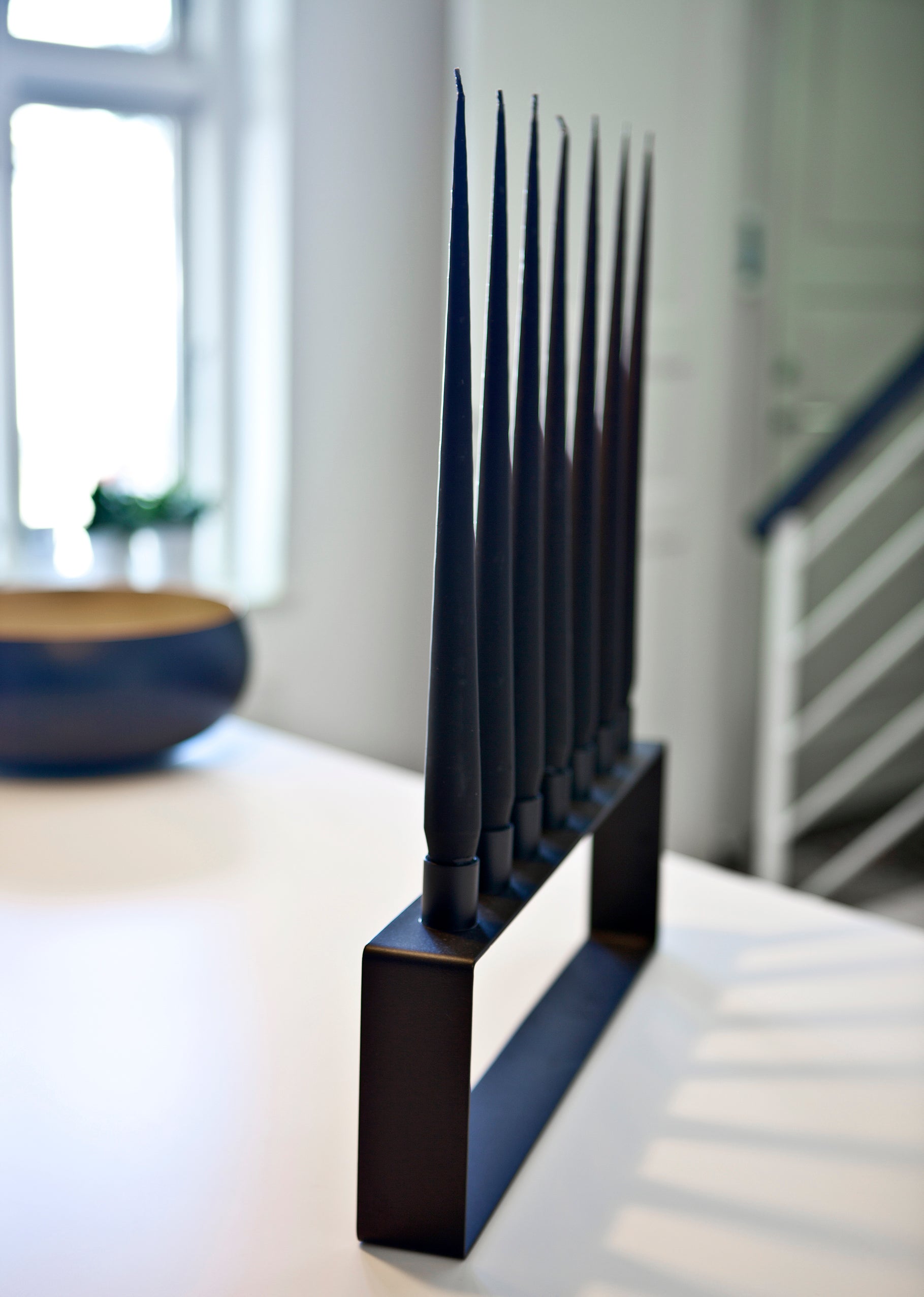 Everything redundant is cut away and back stands a simple frame that carries the 7 candle holders.