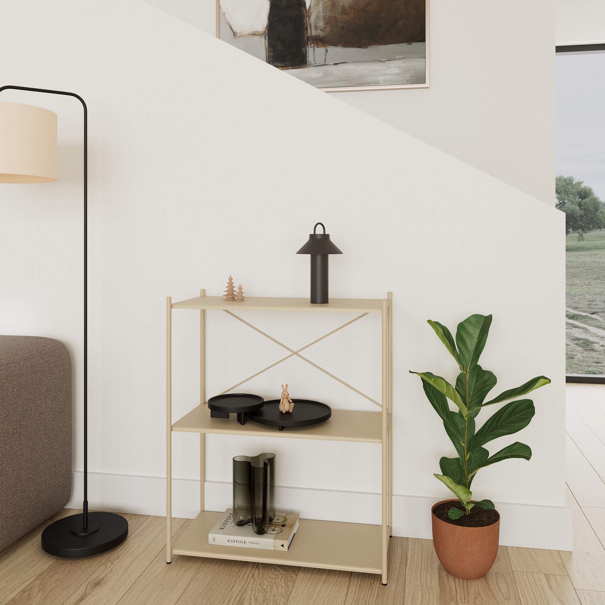 ARTURO er et alsidigt reolsystem fremstillet af pulverlakeret metal i de elegante nuancer Lys grå og Ørkensand.