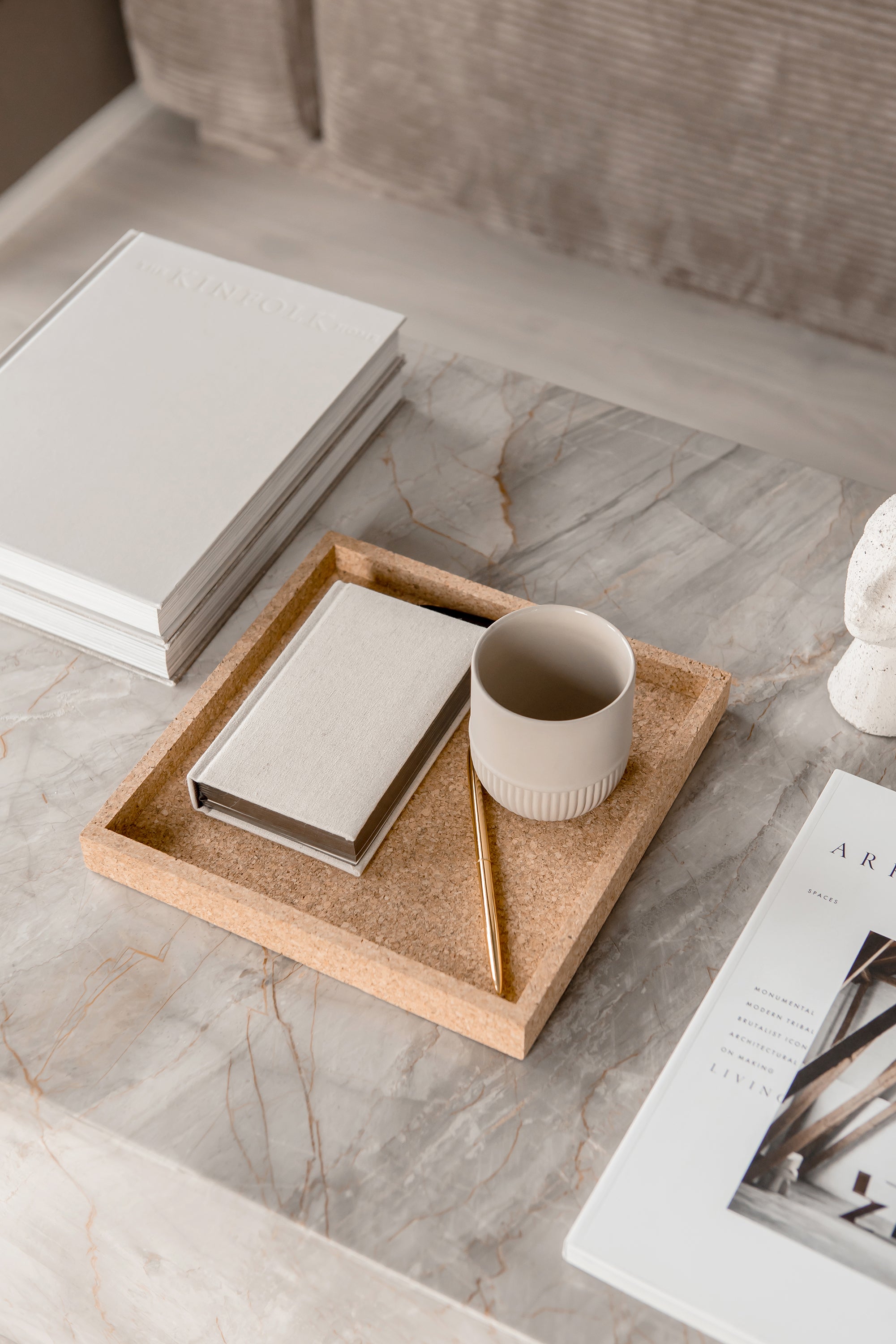 Vores kvadratiske korkbakke i ægte naturkork tilføjer varme og tekstur til enhver interiørstil.