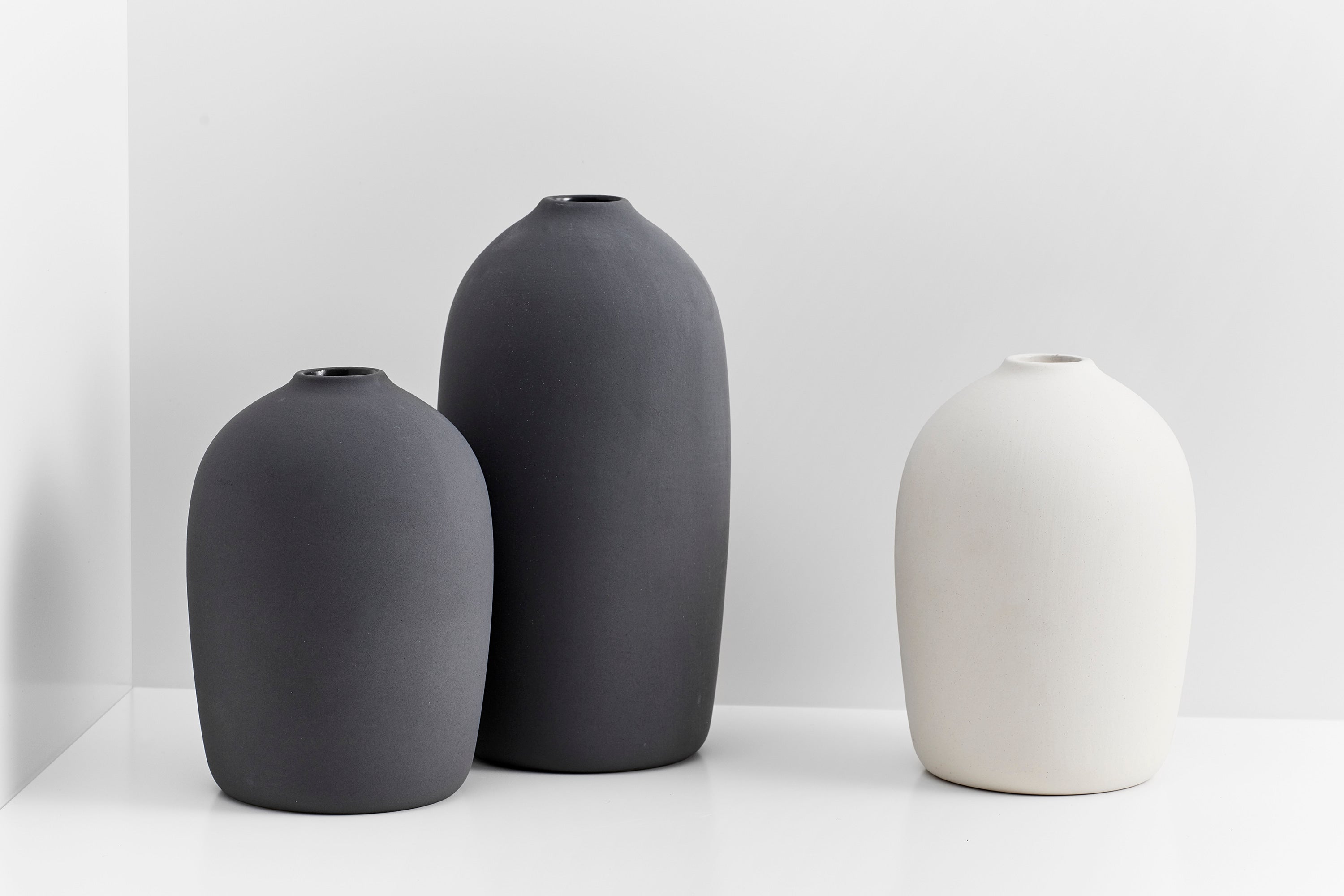 RAW vaserne findes i to størrelser og to tidløse nuancer - en blød hvid og en mørk dæmpet grå.