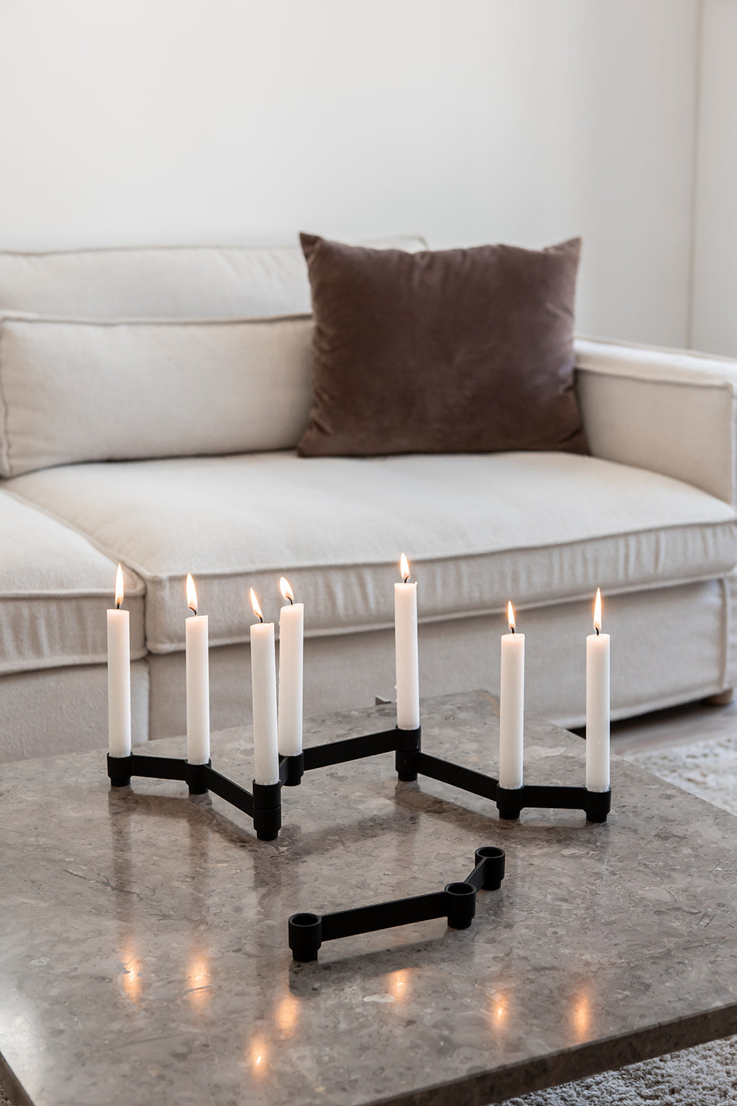 Et langt centerpiece på spisebordet - eller en kompakt opstilling på stuebordet? Byg den lysestage du har brug for, til enhver situation.