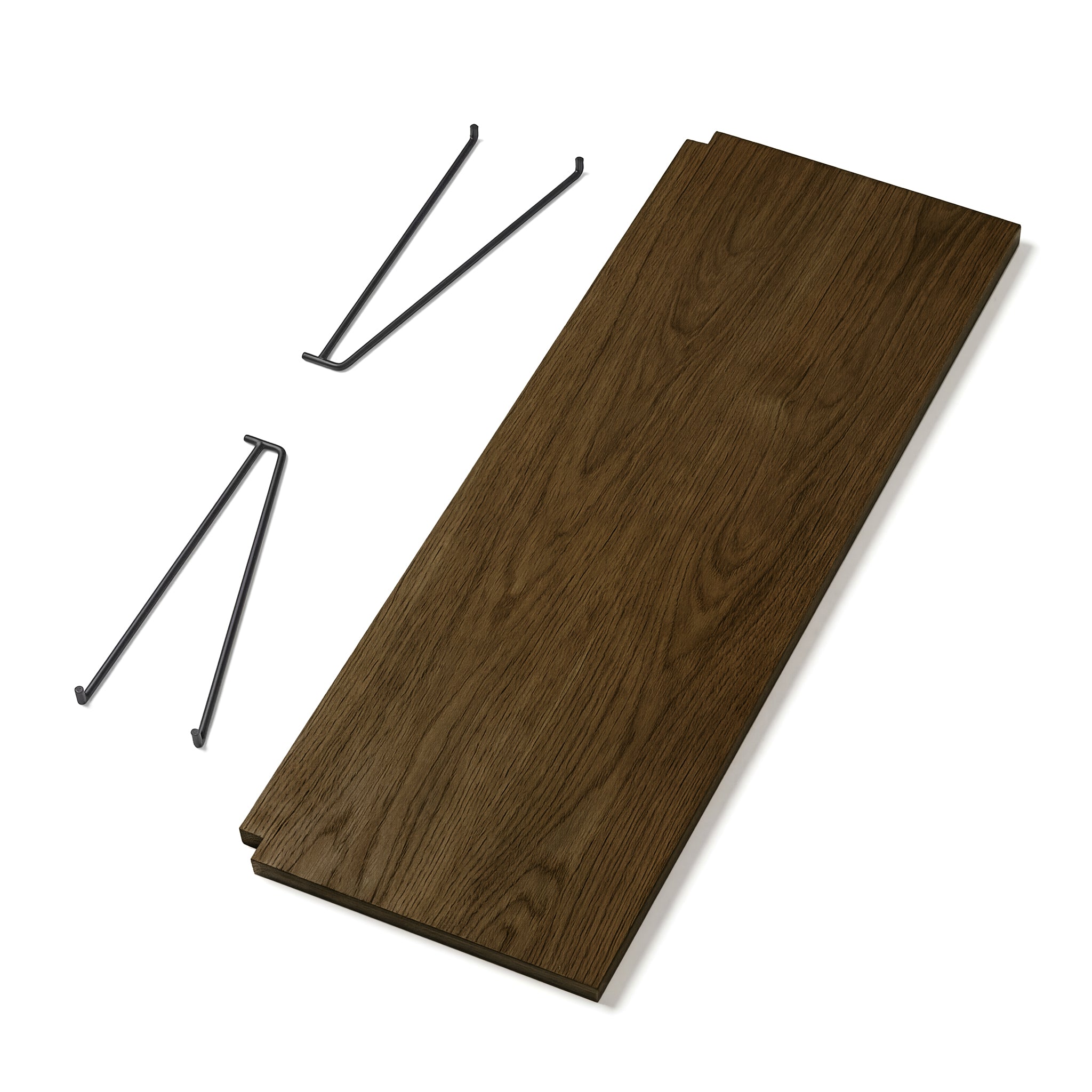 30cm deep CAMPATA shelf in dark stained oak wood veneer with black brackets.
