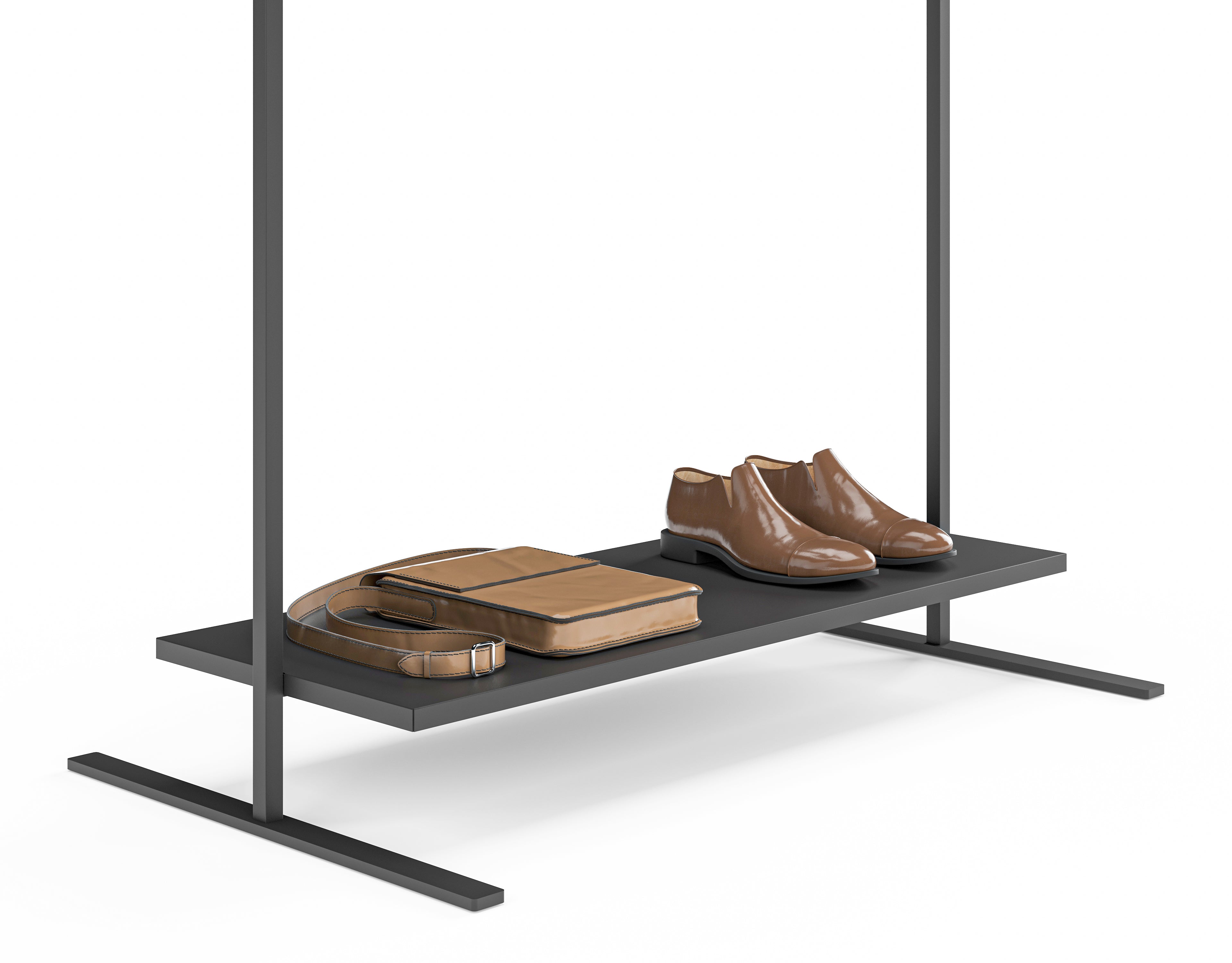 Enhance the versatility of the MARCO clothes rack with this shelf - perfect for storing shoes, bags, or small storage boxes. Crafted from powder-coated steel, its minimalist look and clean, straight lines provide a chic and unobtrusive platform to keep and display items.