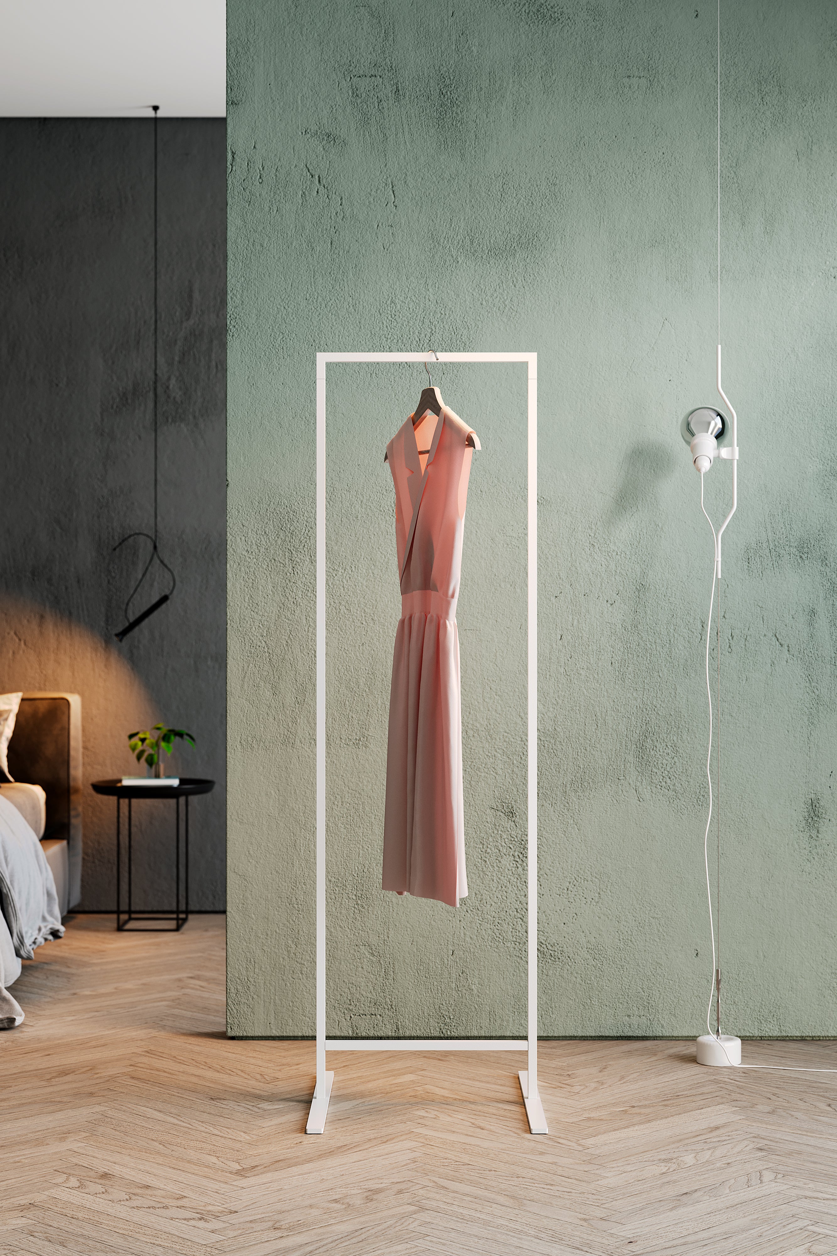 Crafted from powder-coated steel, its minimalistic look and clean, straight lines provide a chic and unobtrusive frame to display your clothing.