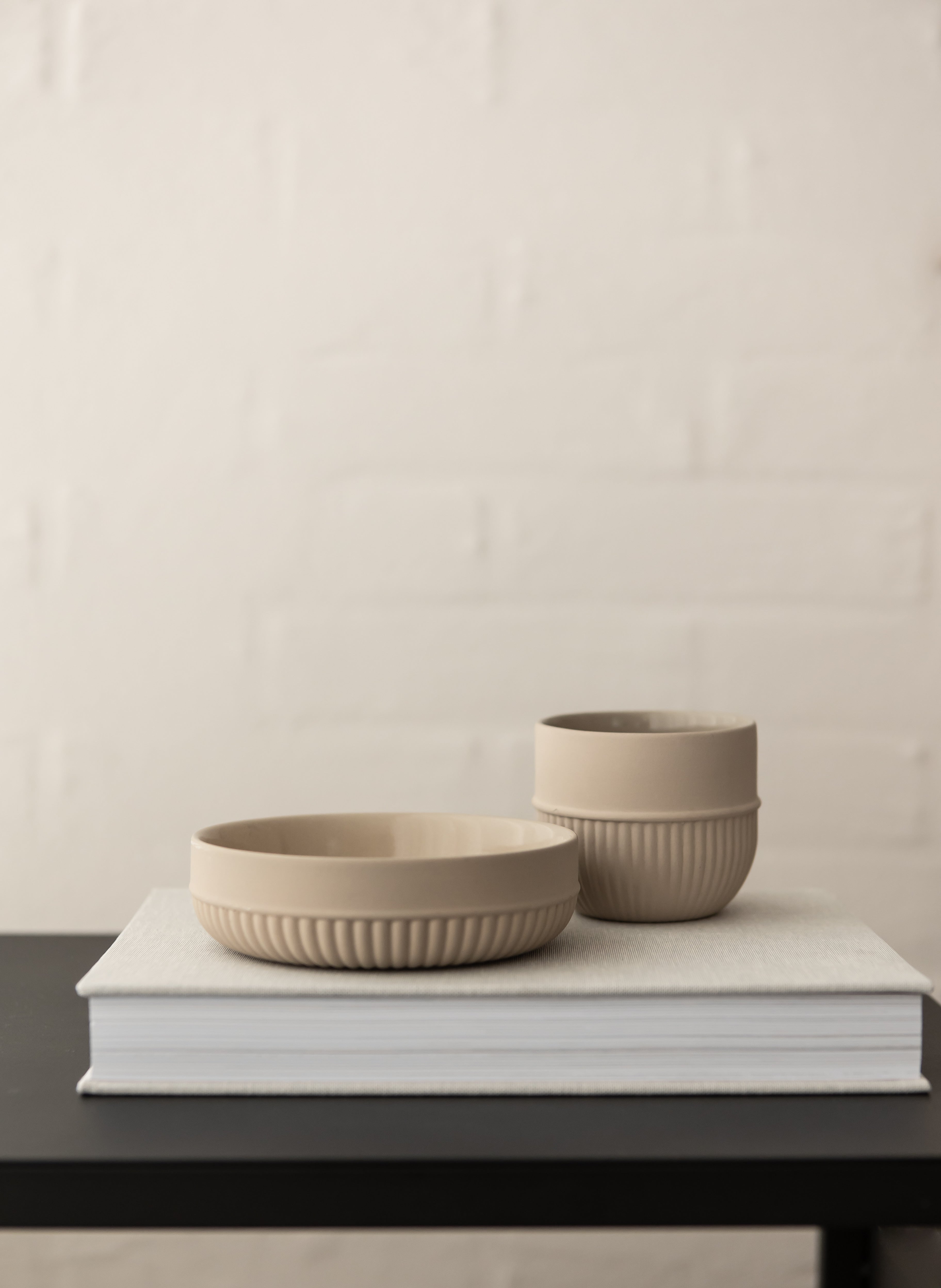 The grooved bottom gives the bowl a raw, yet elegant look. ROOT dessert bowl is available in two colours - cream white and beige.